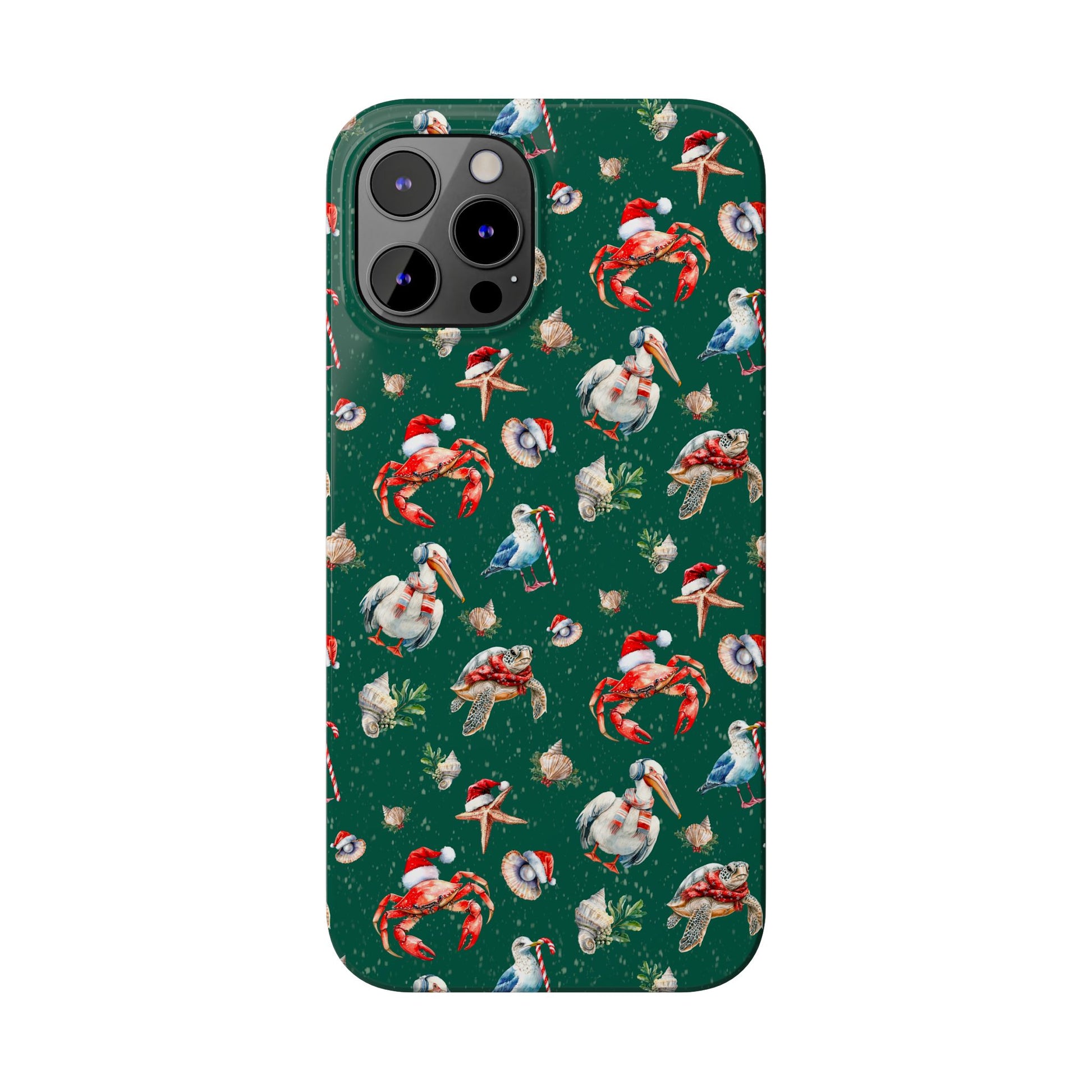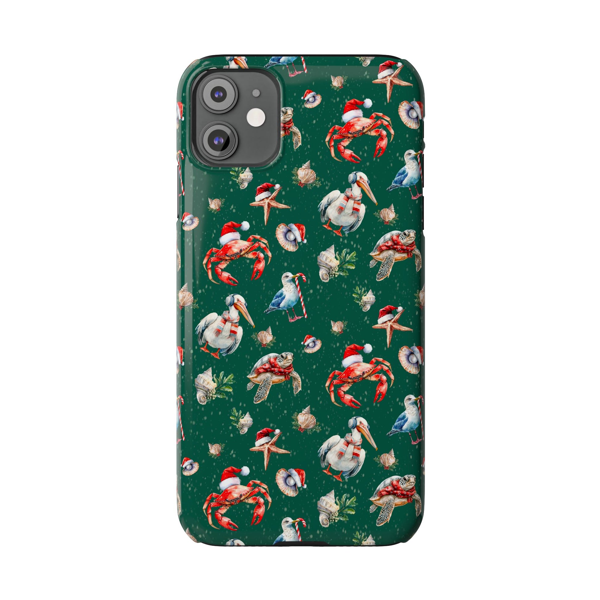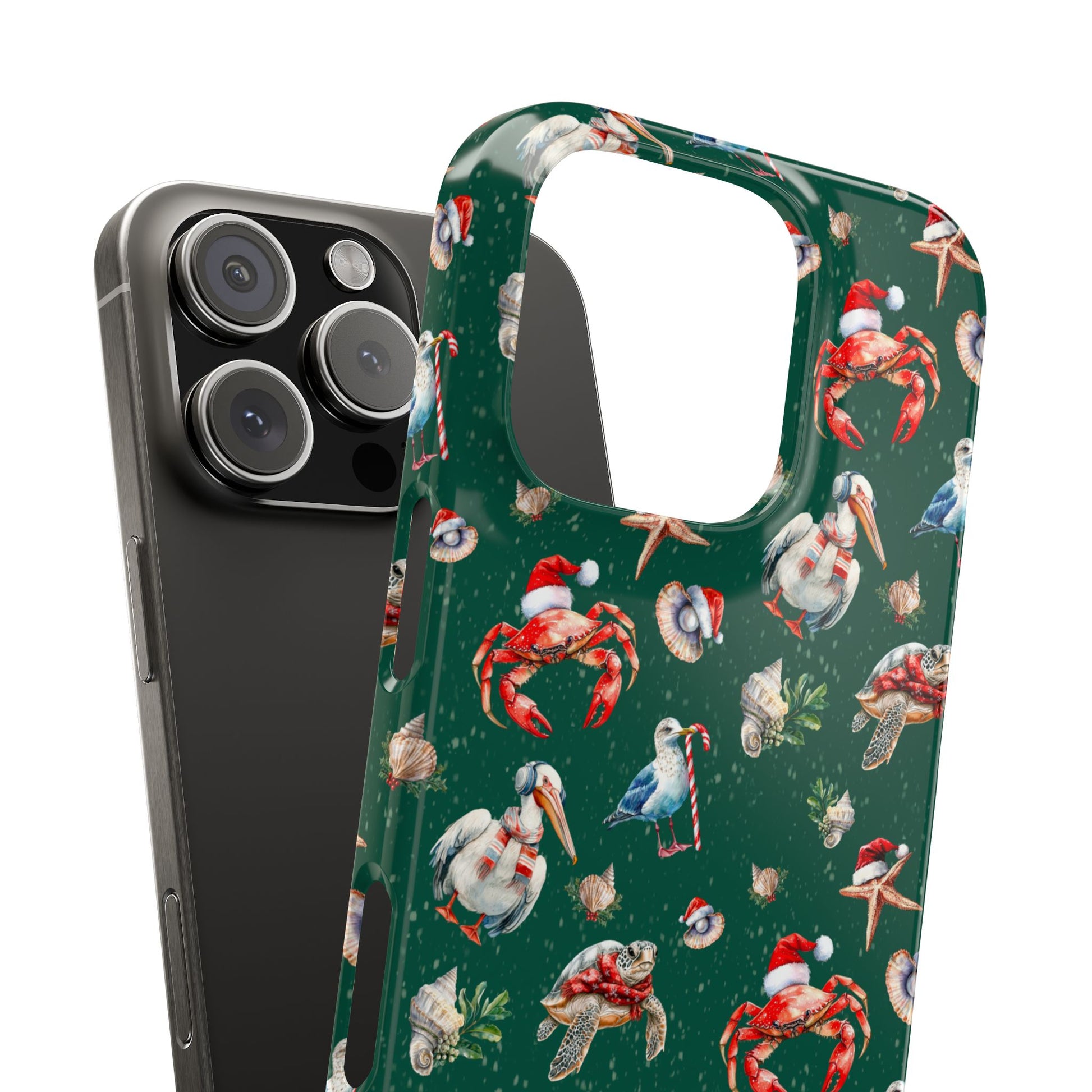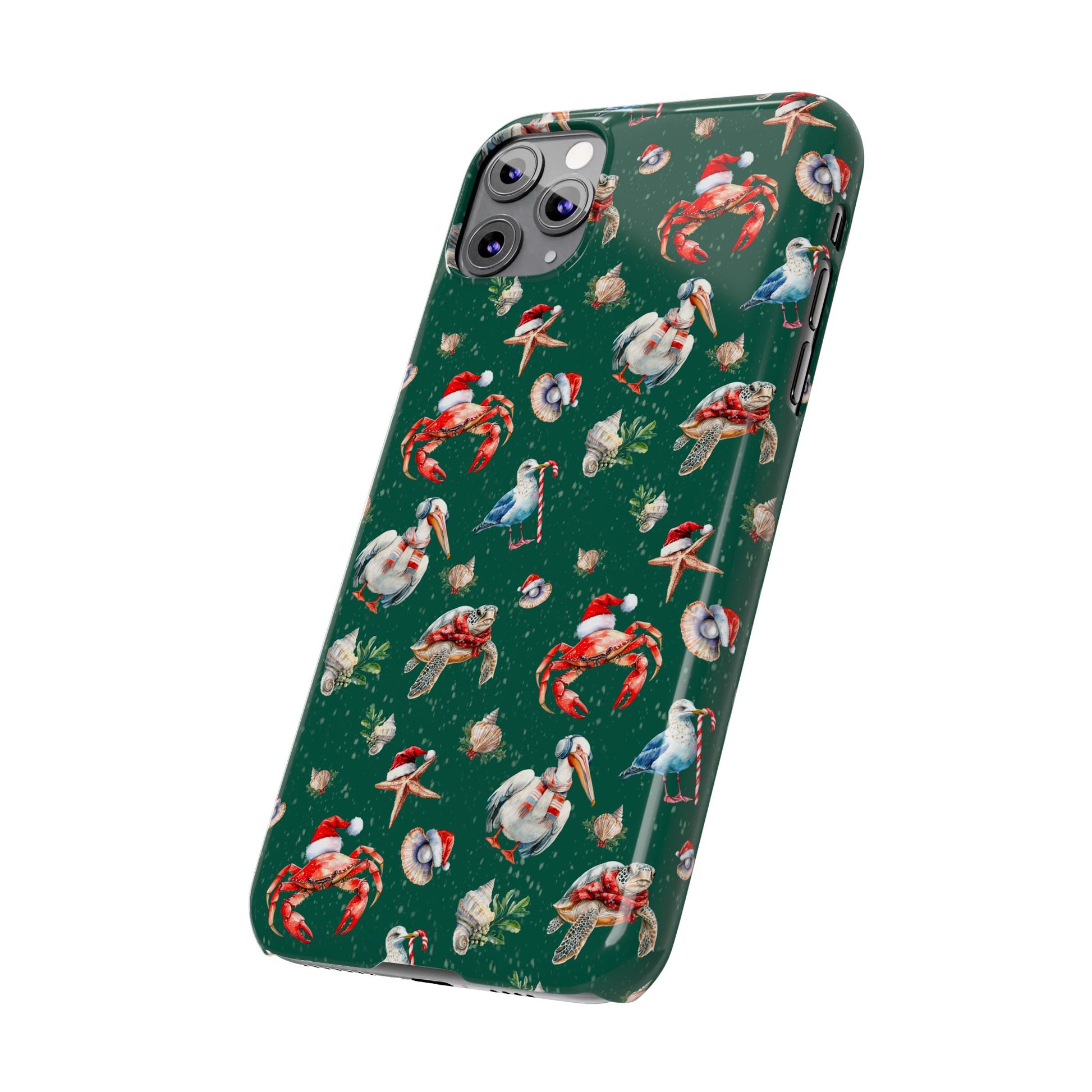 Coastal Birds Slim Phone Case, Shellfish Holiday Design, Festive Coastal Accessories, Beachy Phone Cover, Ocean Lover Gift, Nautical Phone