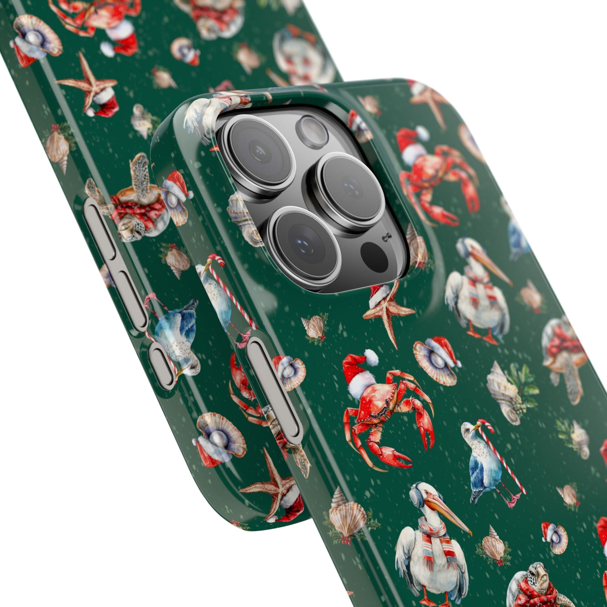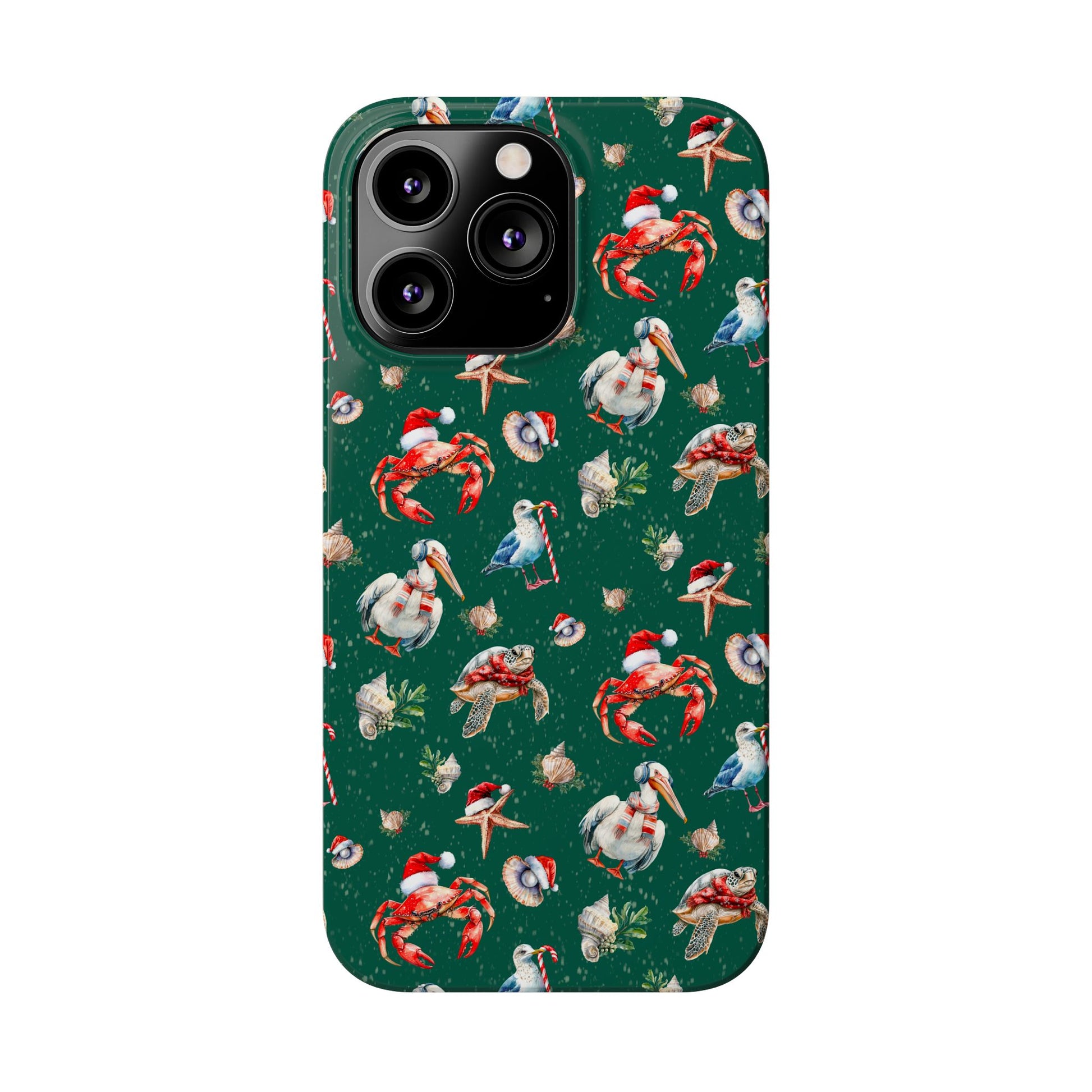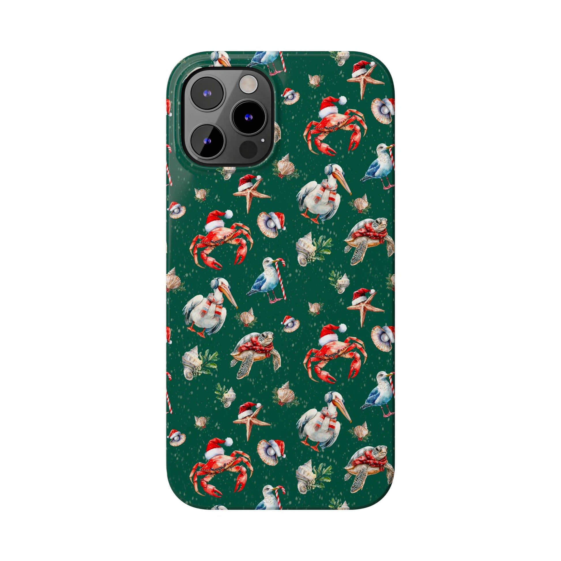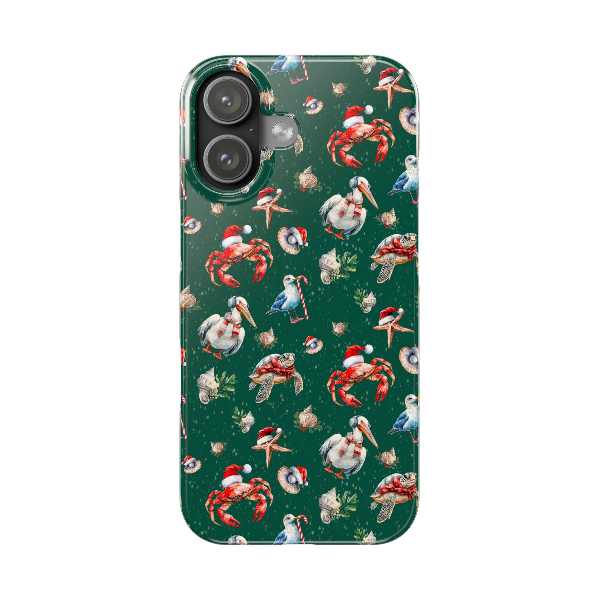 Coastal Birds Slim Phone Case, Shellfish Holiday Design, Festive Coastal Accessories, Beachy Phone Cover, Ocean Lover Gift, Nautical Phone