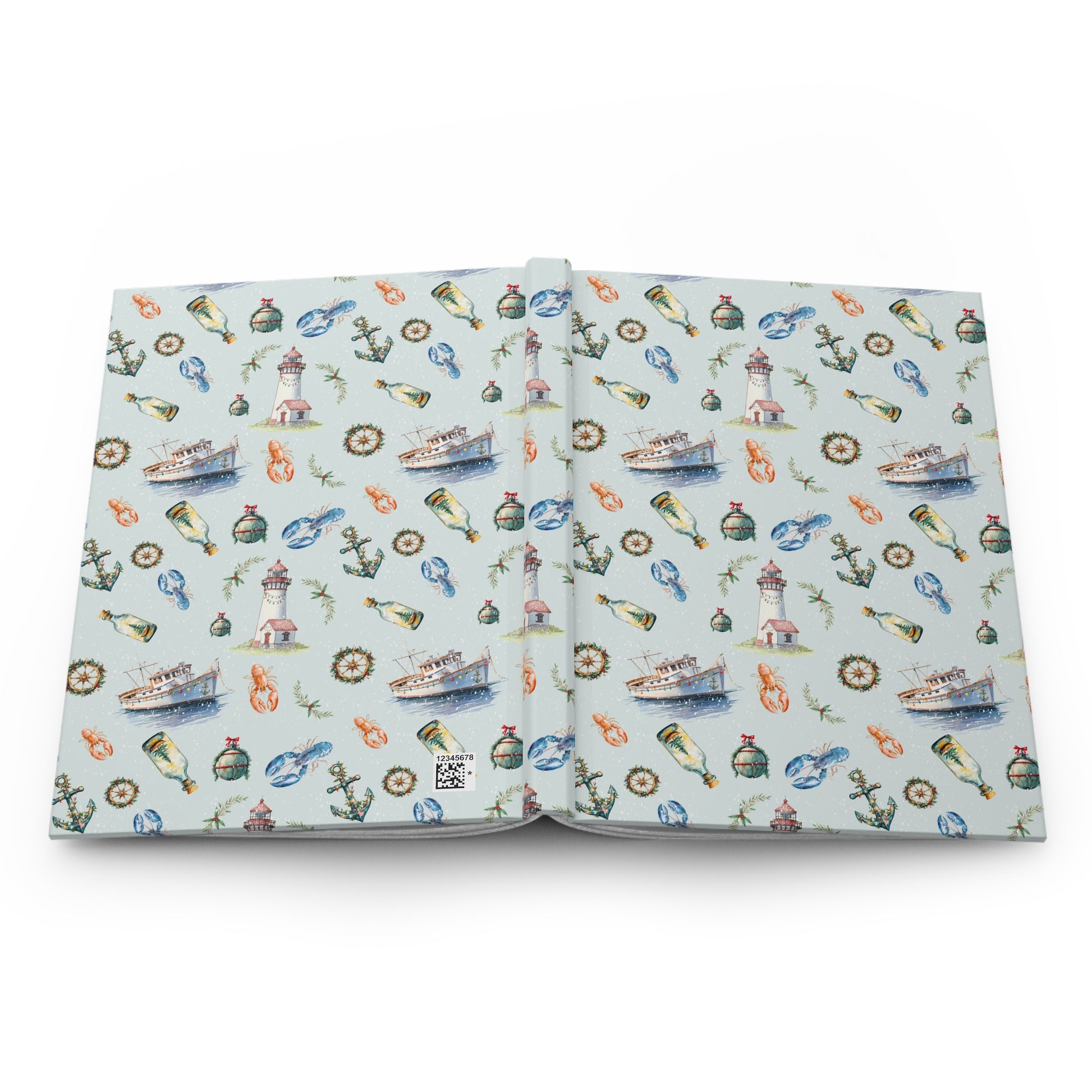 Coastal and nautical-themed Christmas lined journal perfect for those who love the east coast and want a unique touch to their holiday gifts. Ideal for Christmas, winter celebrations, and anyone with a love for coastal decor. Features lobsters, fishing boats, lighthouses, and crabs decorated for the holidays.
